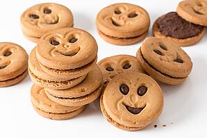 "Und, was kann ich Ihnen noch Leckeres anbieten?" erkundigt sie sich. Dabei lächelt sie mich an. Eigentlich strahlt sie sogar. Mir ist um diese Uhrzeit noch gar nicht nach Lächeln oder gar Strahlen zumute, aber irgendwie ist ihre gute Stimmung ansteckend. Also lächele ich zurück.